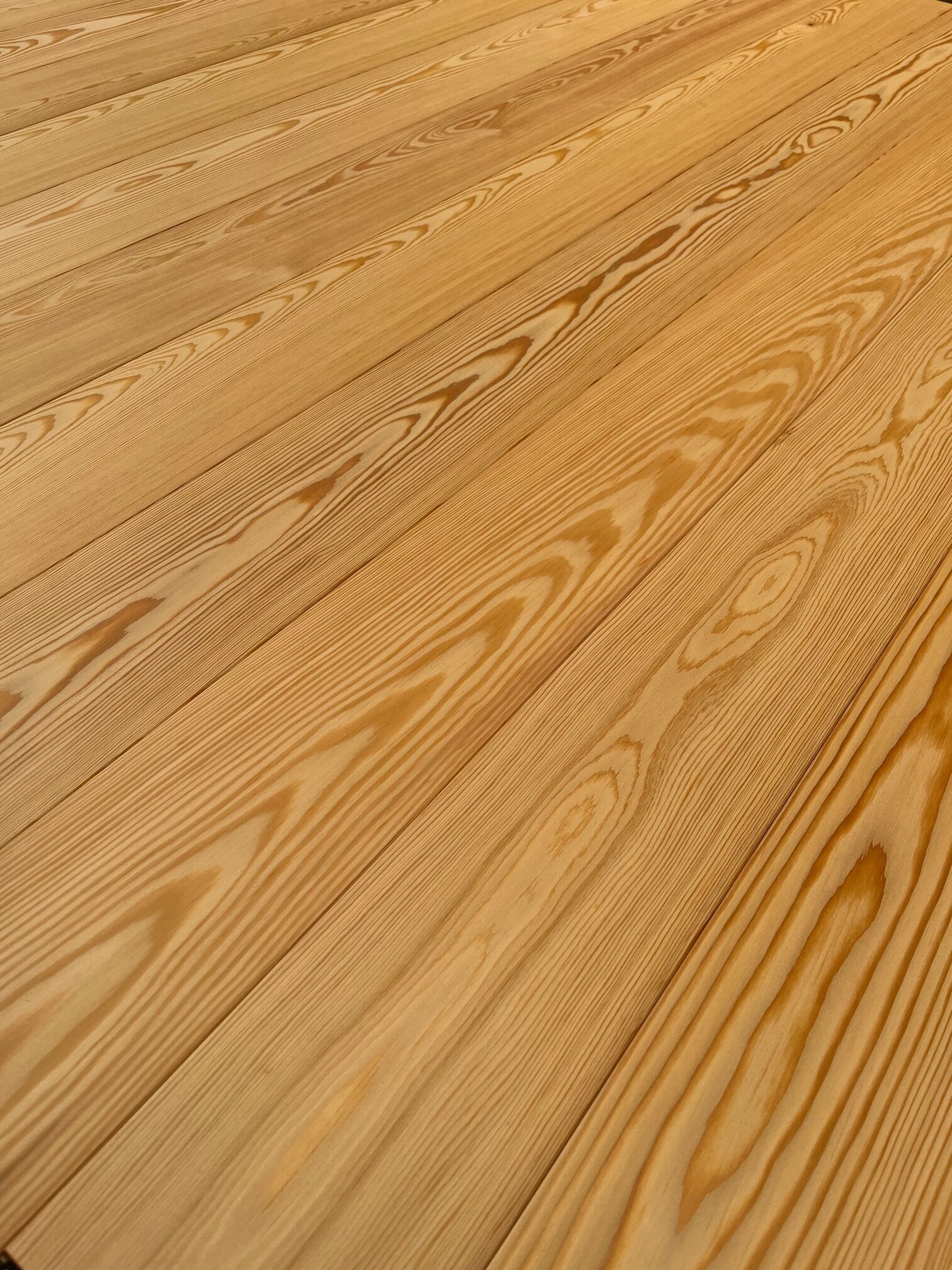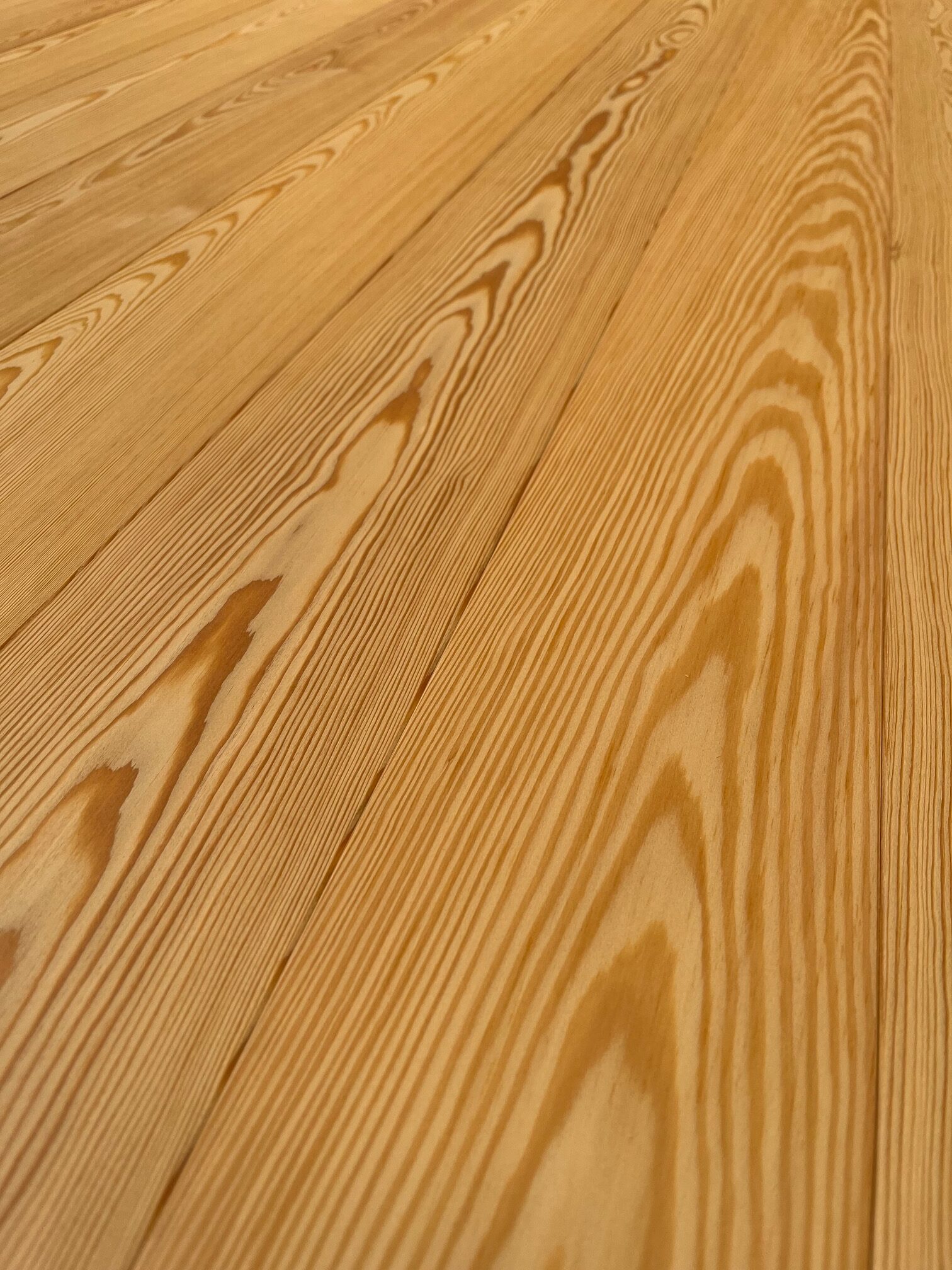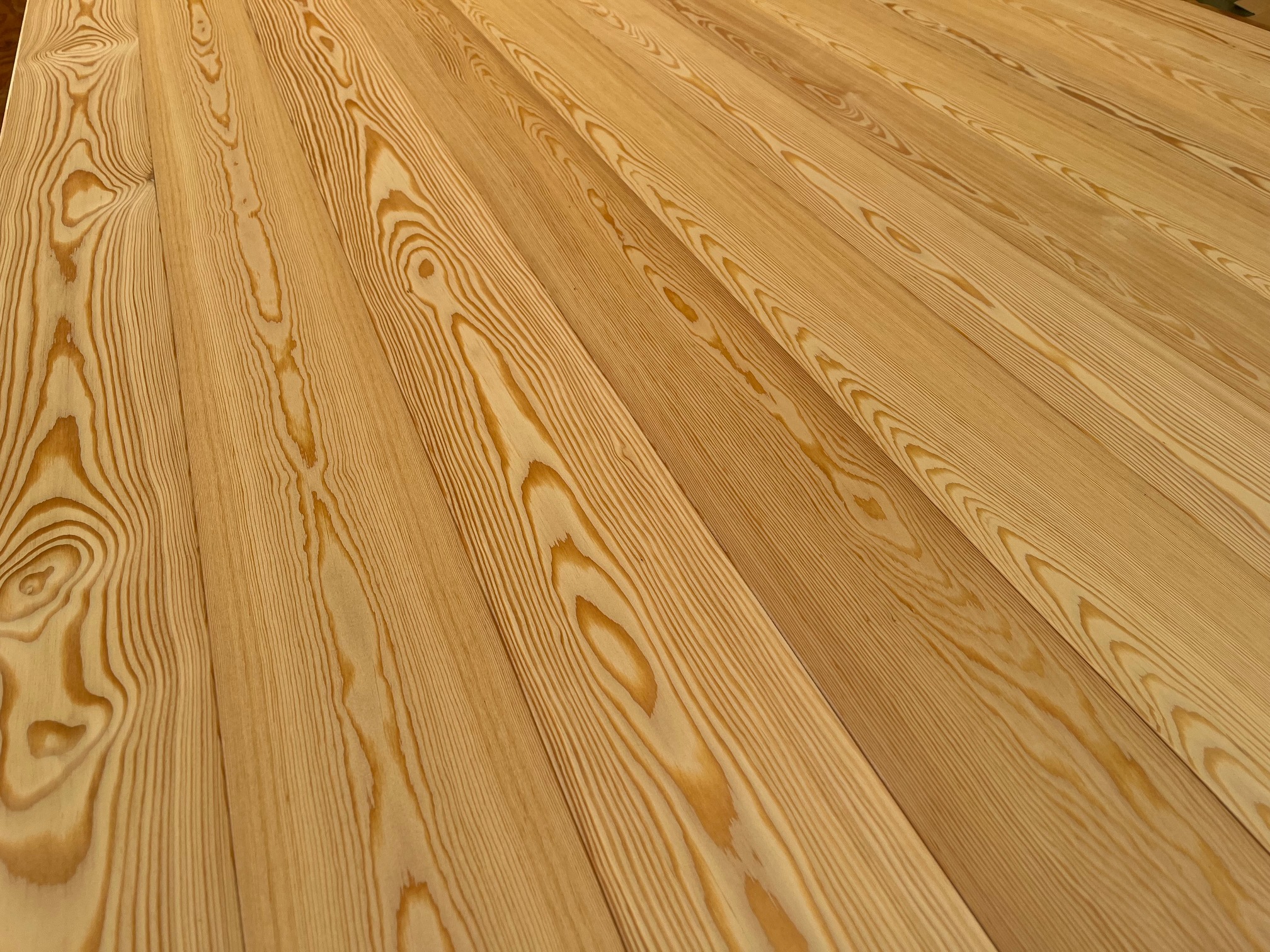 カラマツは成長が早く、真っ直ぐに伸びる幹を持つ針葉樹で、はっきりとした木目と整った表情を併せ持つ素材です。本商品は節が少なめの上小グレードのため、空間をすっきりと整え、明るく清潔感のある印象を与えます。ナチュラルからモダン、今流行りの『ジャパンディ』スタイルまで幅広いテイストの住まいに馴染みやすく、住宅はもちろん店舗や物件用途にも採用しやすいフローリングです。